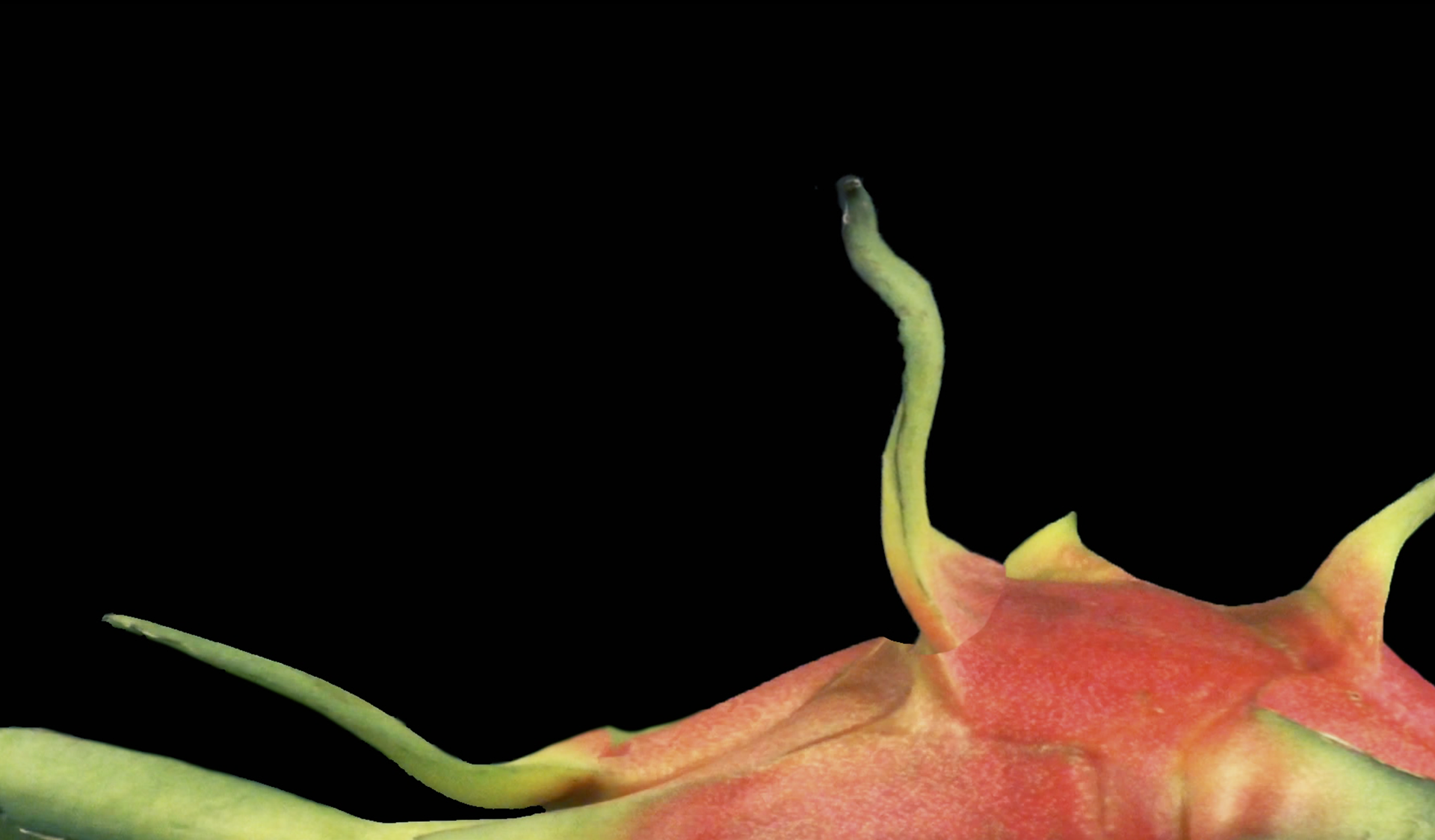Dragon is a 3-channel experimental video with 5.1 surround sound and animation. It seeks to breathe life into the stillness of a dragon fruit, and to offer it a sense of visibility and movement that it typically does not otherwise possess.
